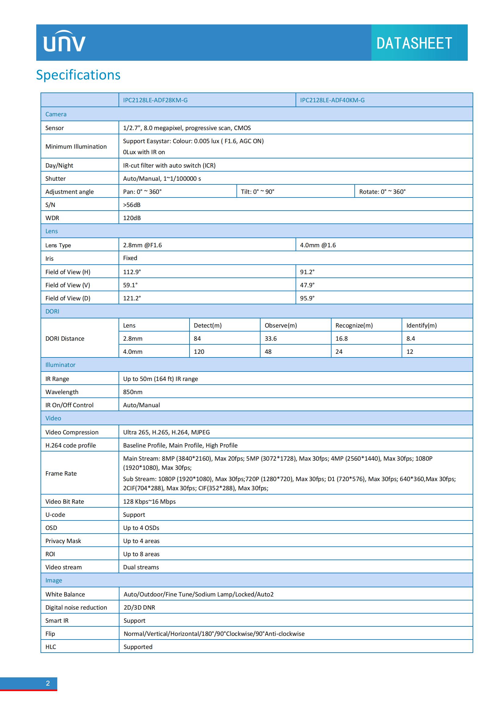 • High quality image with 8MP, 1/2.7″CMOS sensor