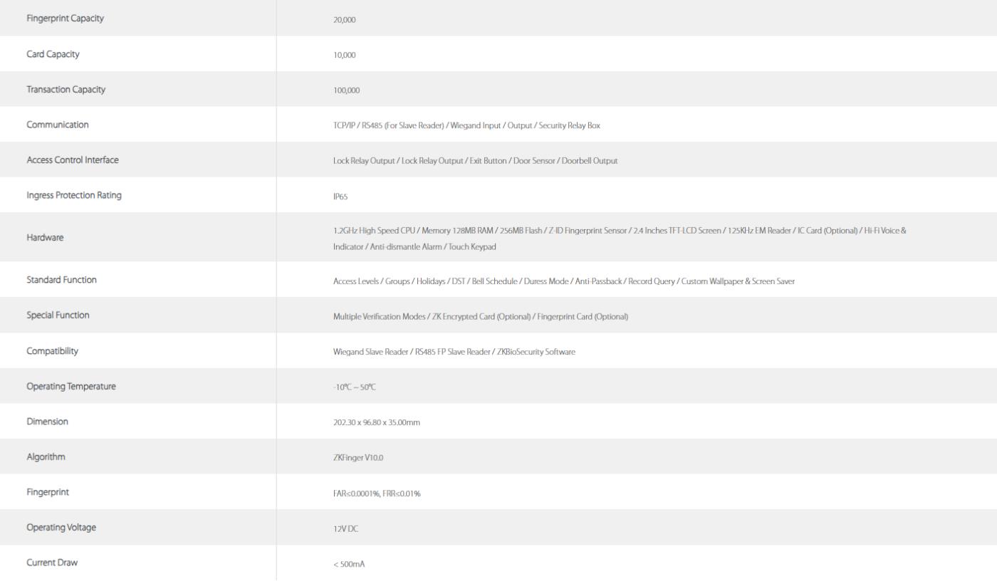 ProCapture-WP is an access control terminal applying the most advanced Z-ID fingerprint sensor. Its outstanding performance provides a high identification rate towards dry, wet and rough fingers . The fingerprint verification speed has been dramatically increased by its optimized fingerprint algorithm and the brand new ZMM220 hardware platform, equipped with a fast 1.2GHz processor.