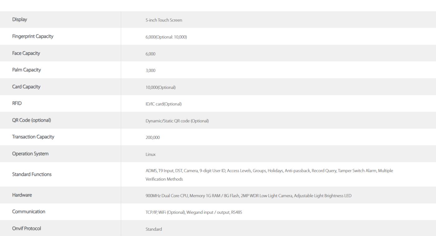 SpeedFace-V5L [TI] is a fully upgraded version of the SpeedFace-V5L[TD] visible light facial recognition body temperature detection terminal, using Thermal Imaging intelligent engineering facial recognition algorithms and the latest computer vision technology. It supports both facial and palm verification with large capacity and speedy recognition, as well as improves security performance in all aspects.