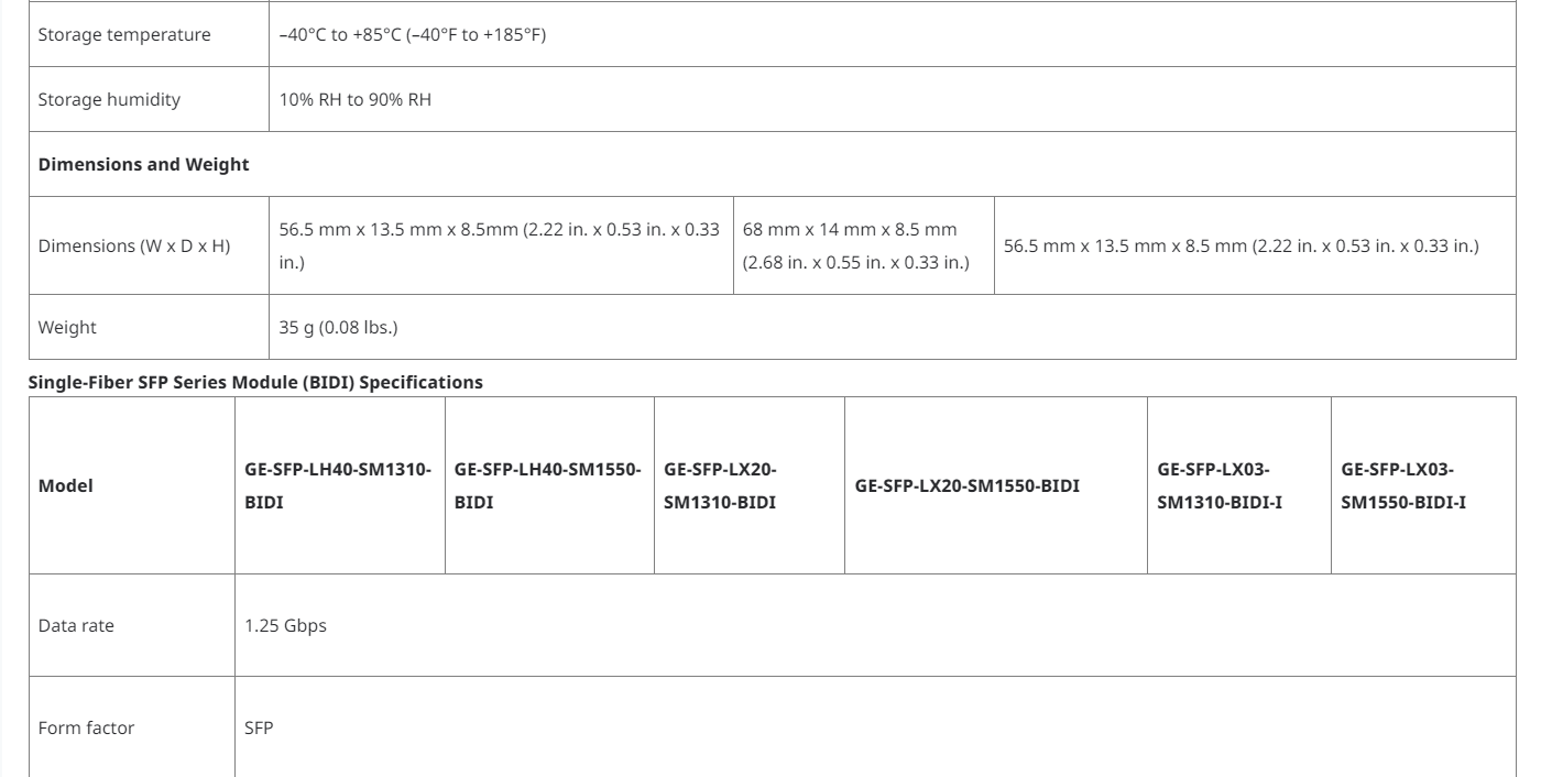 GE-SFP-LX20-SM1550-BIDI Module