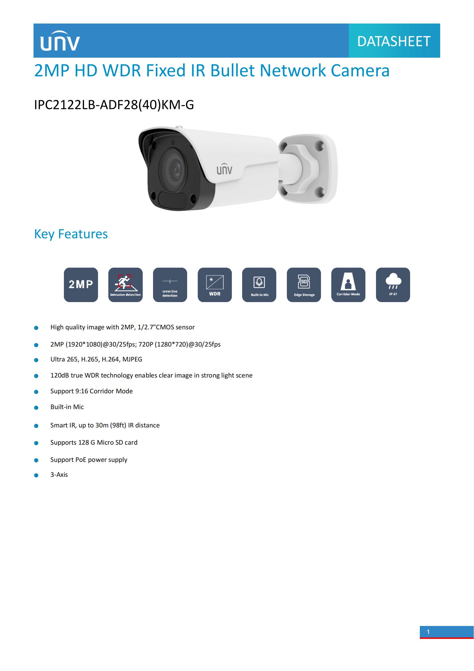 • High quality image with 2MP, 1/2.7″CMOS sensor