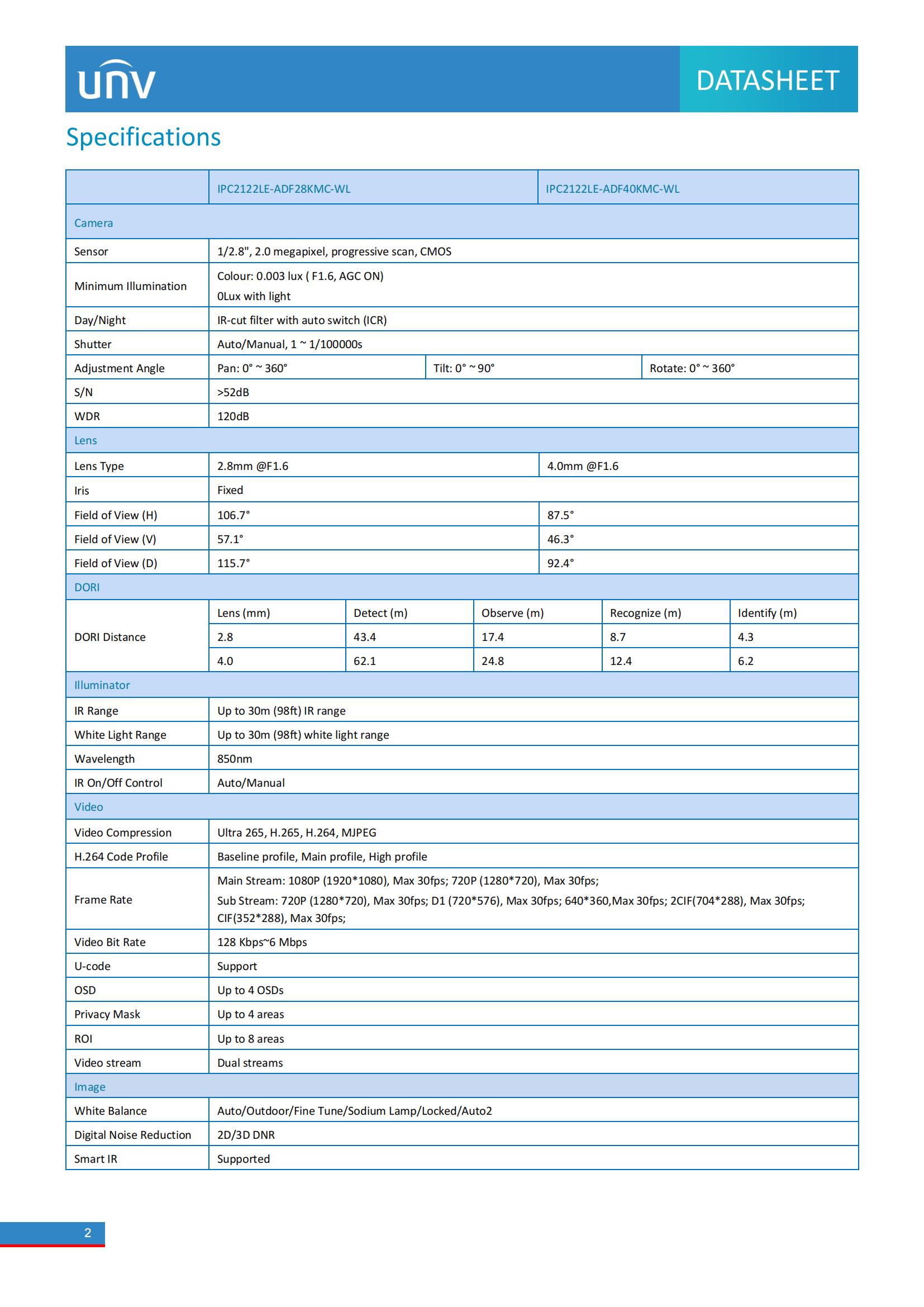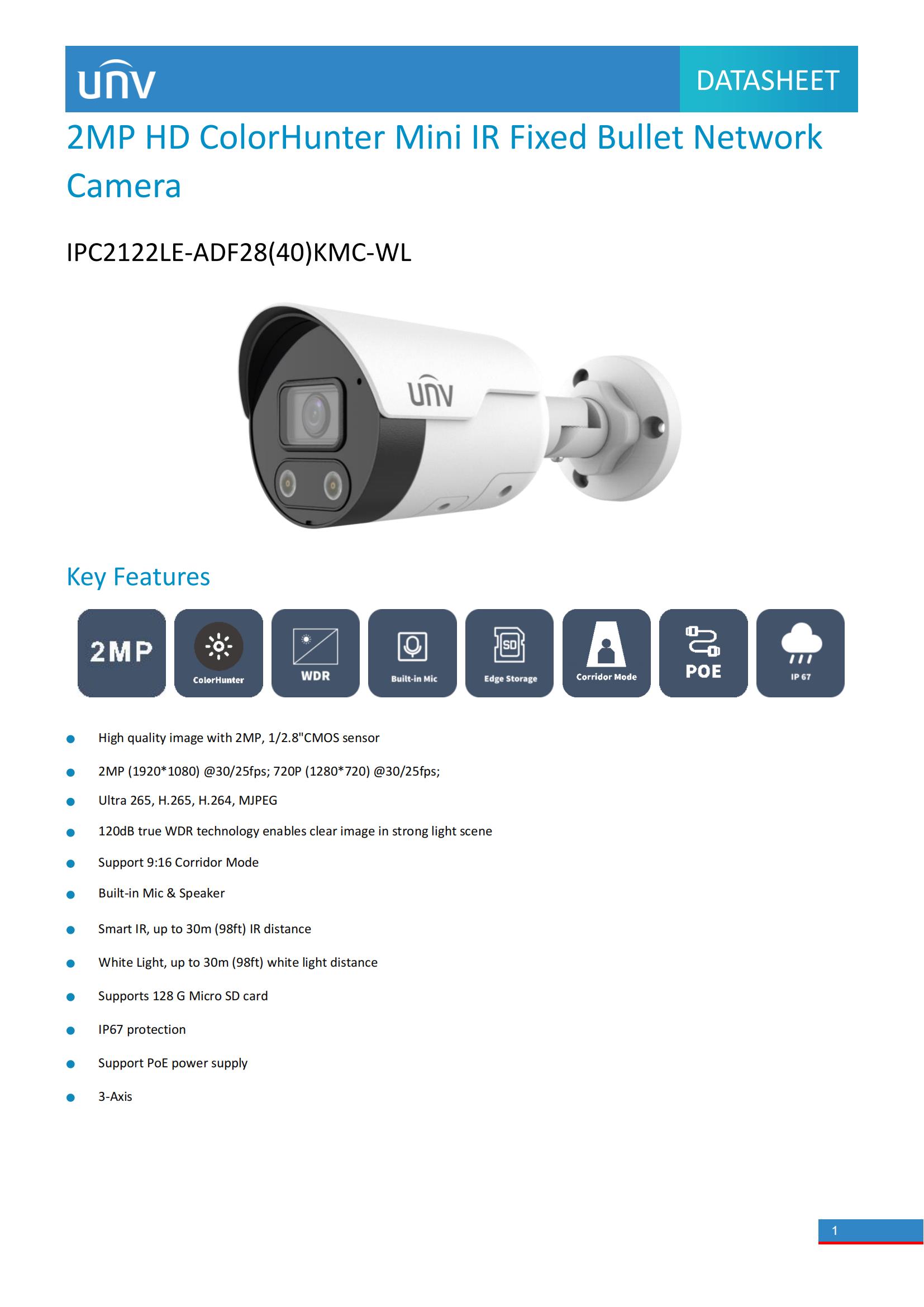 • High quality image with 2MP, 1/2.8″CMOS sensor