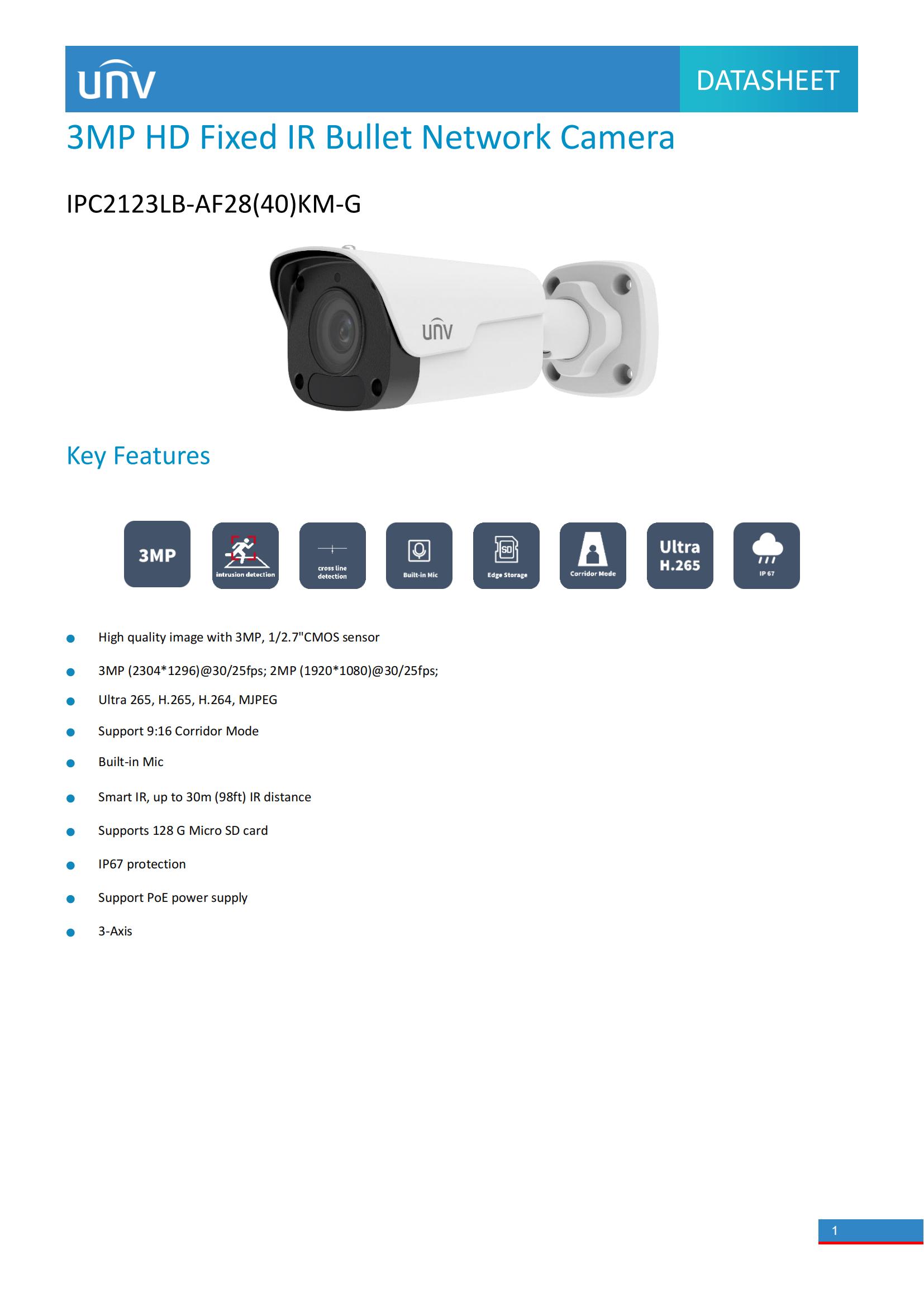 • High quality image with 3MP, 1/2.7″CMOS sensor
