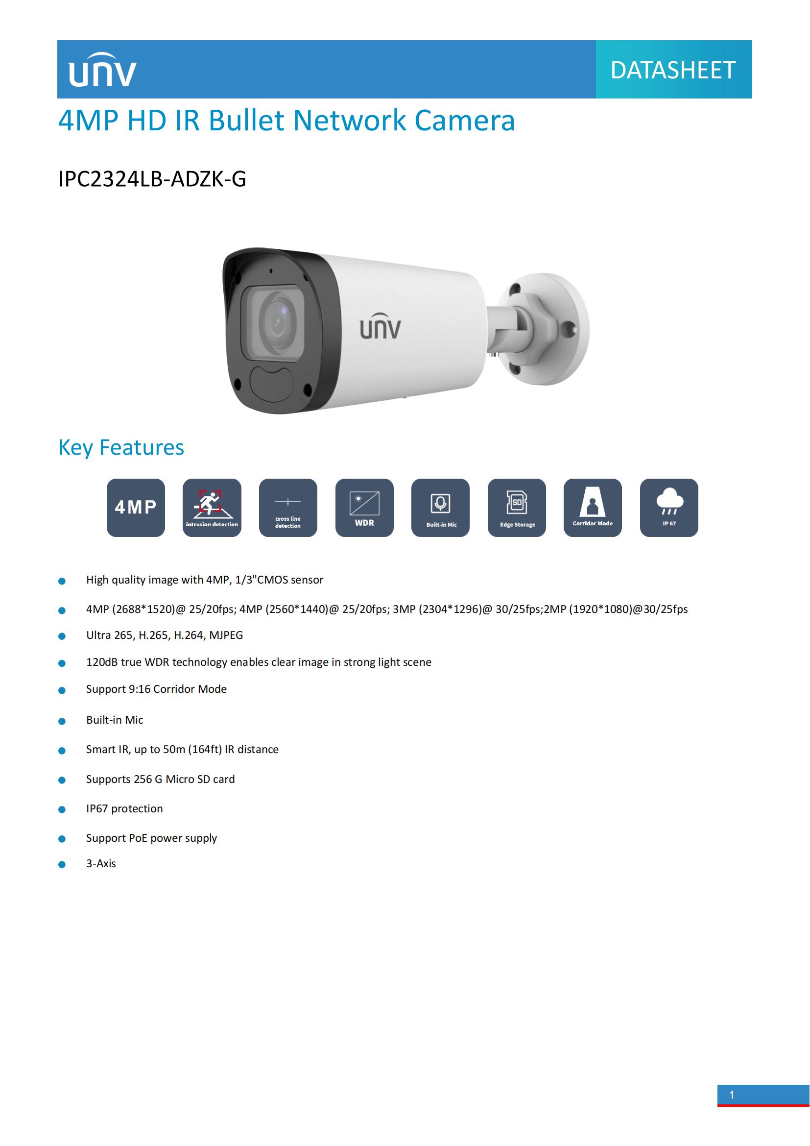 • 4MP (2688*1520)@ 25/20fps; 4MP (2560*1440)@ 25/20fps; 3MP (2304*1296)@ 30/25fps;2MP (1920*1080)@30/25fps