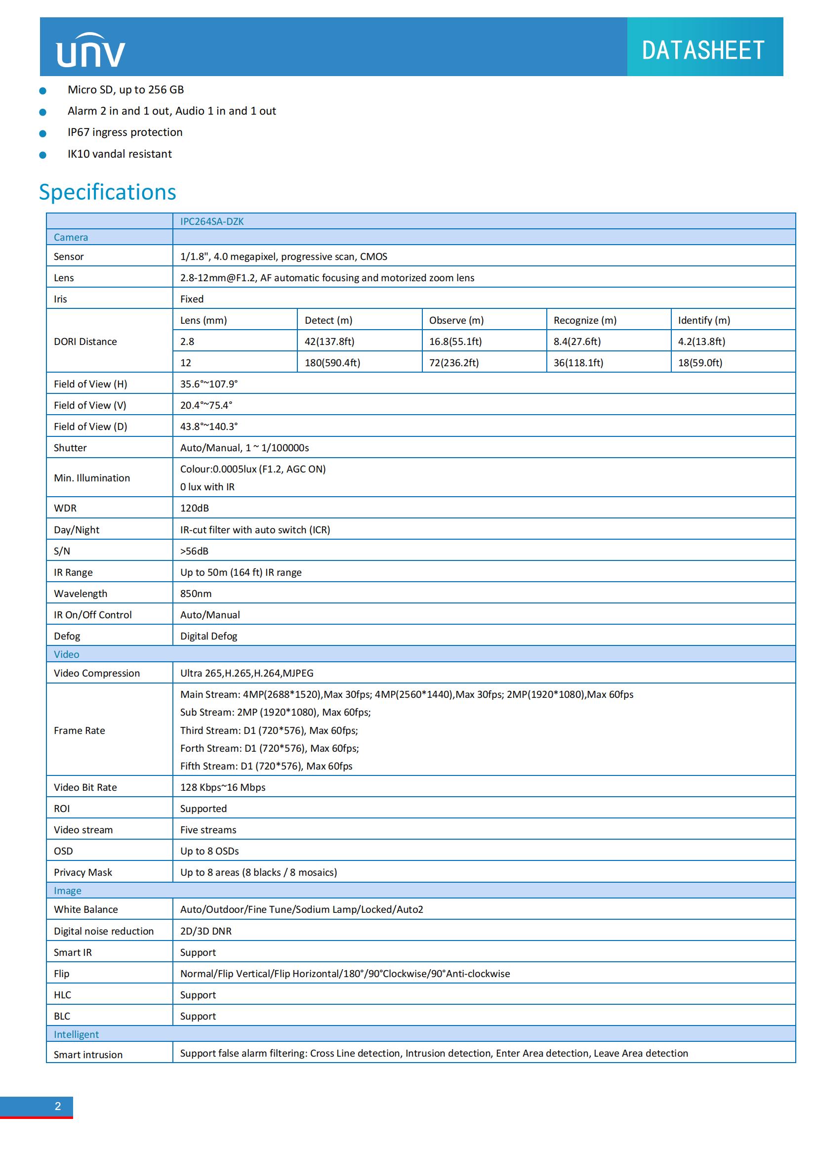 Smart IR, up to 50m (164 ft) IR distance