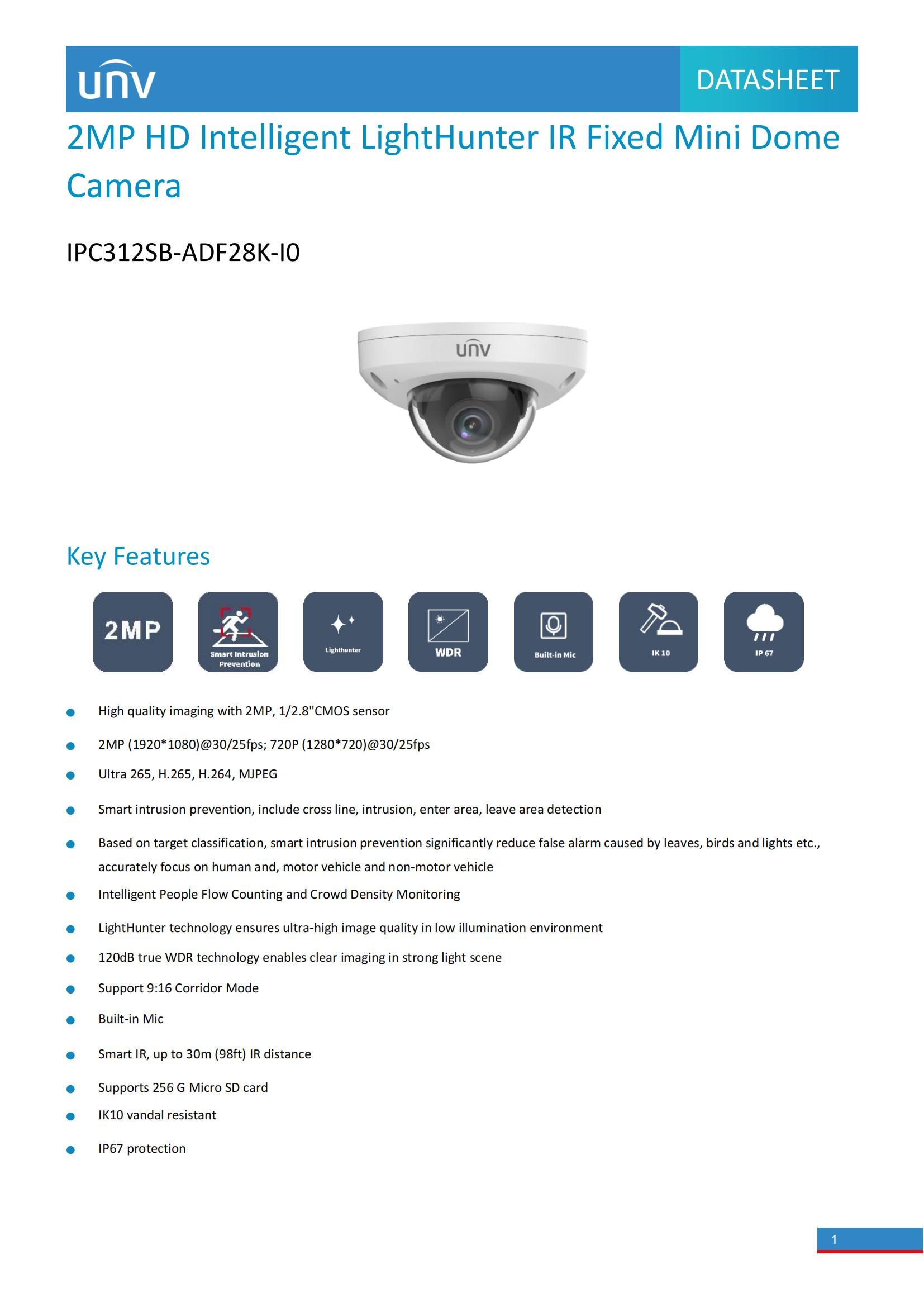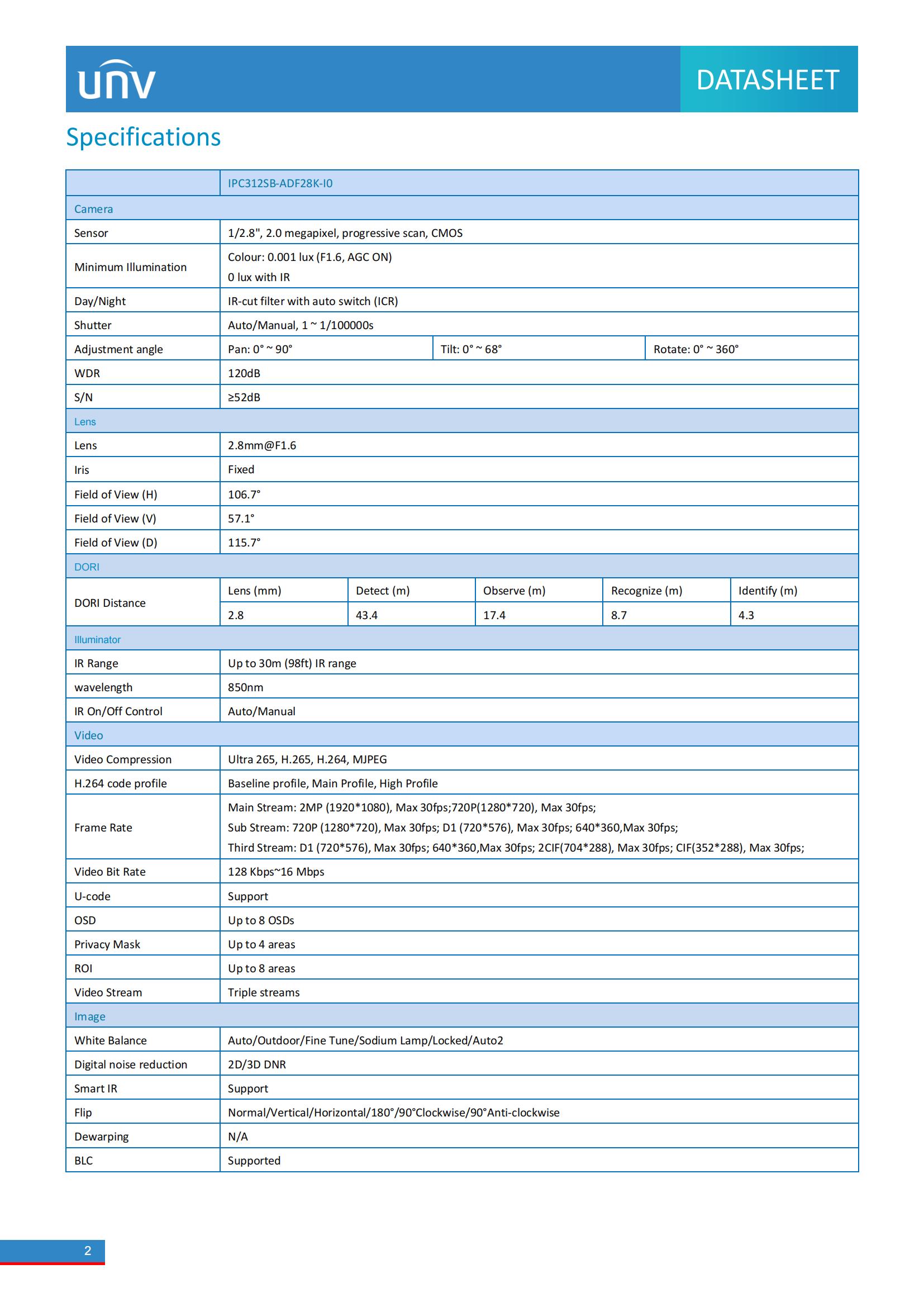 • High quality imaging with 2MP, 1/2.8″CMOS sensor