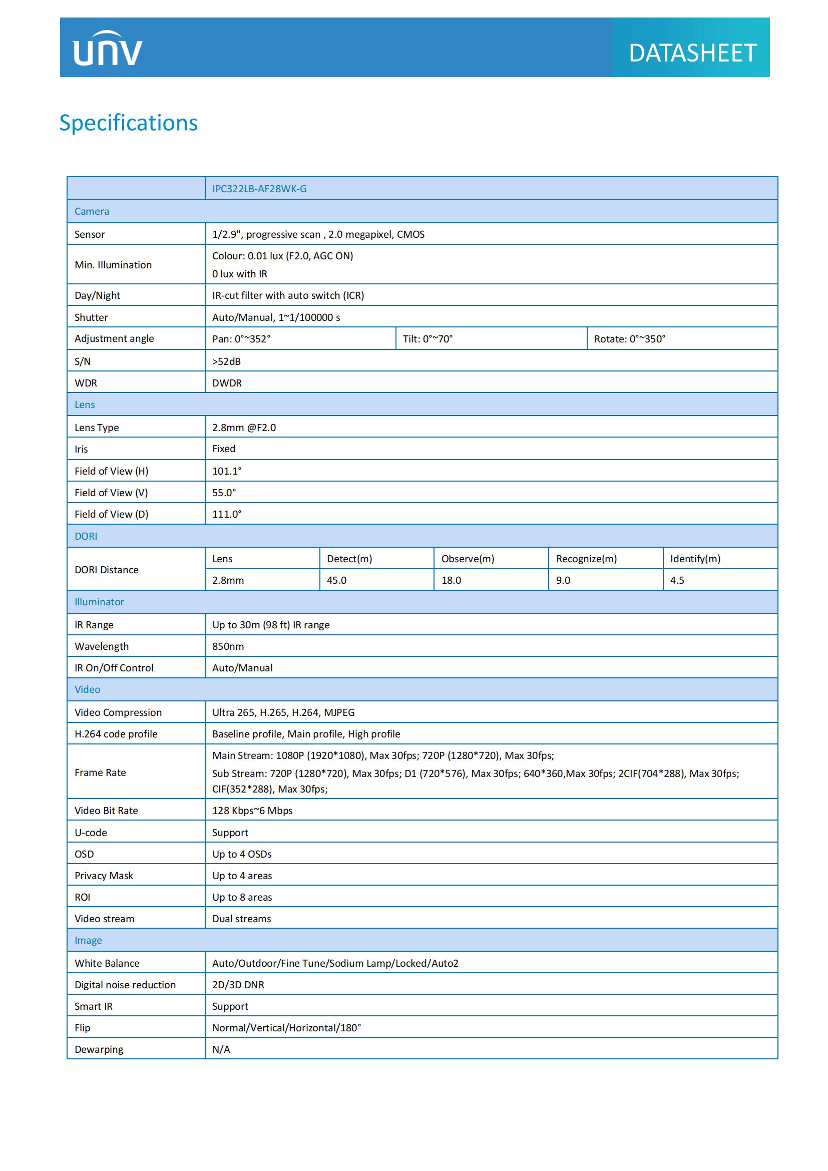 • Smart IR, up to 30m (98ft) IR distance