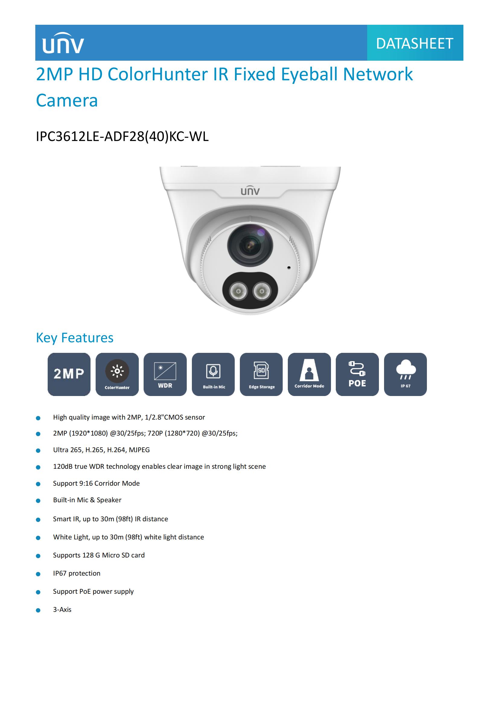 • High quality image with 2MP, 1/2.8″CMOS sensor