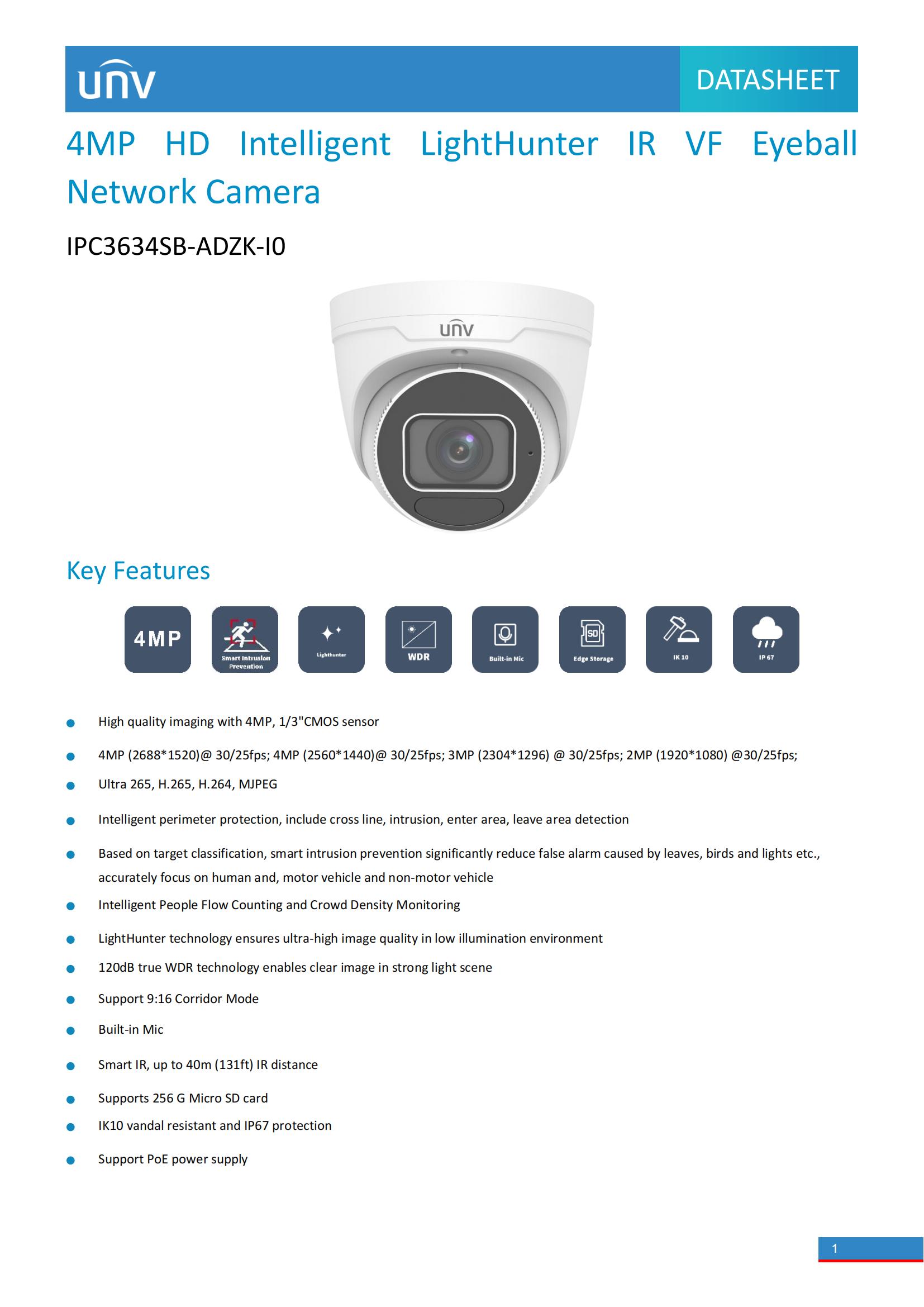• High quality imaging with 4MP, 1/3″CMOS sensor