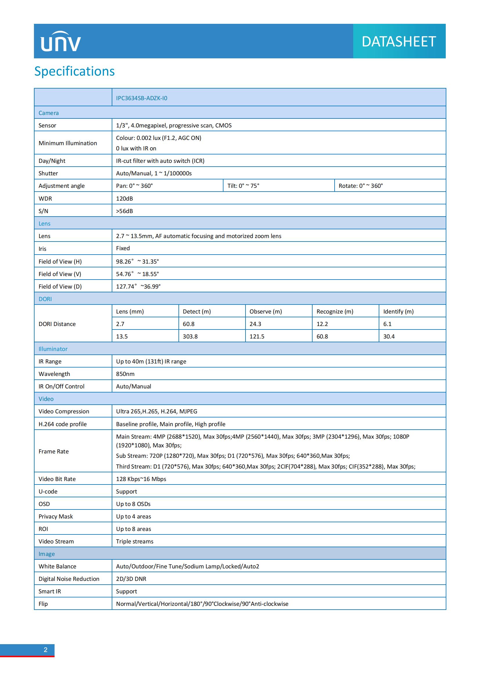 • 4MP (2688*1520)@ 30/25fps; 4MP (2560*1440)@ 30/25fps; 3MP (2304*1296) @ 30/25fps; 2MP (1920*1080) @30/25fps;