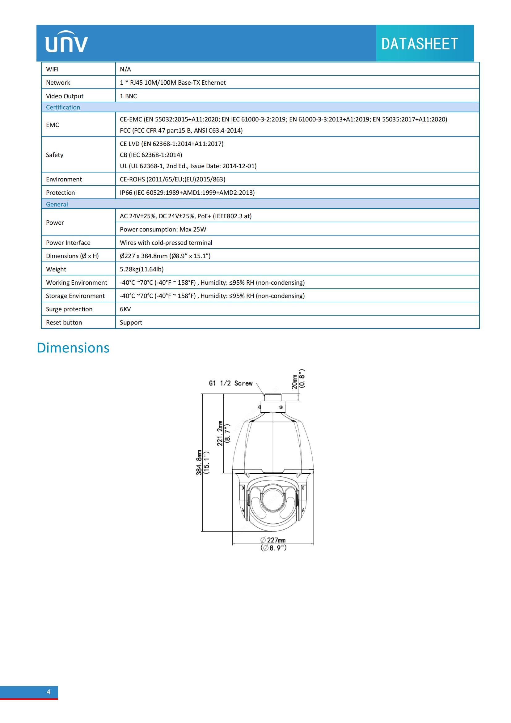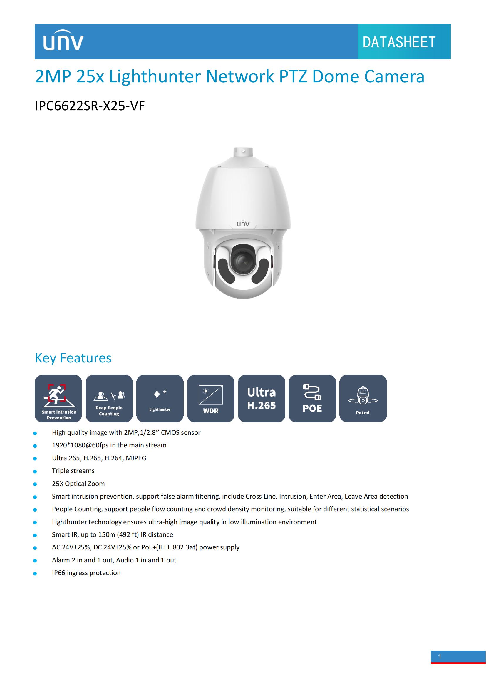 • Smart IR, up to 150m (492 ft) IR distance
