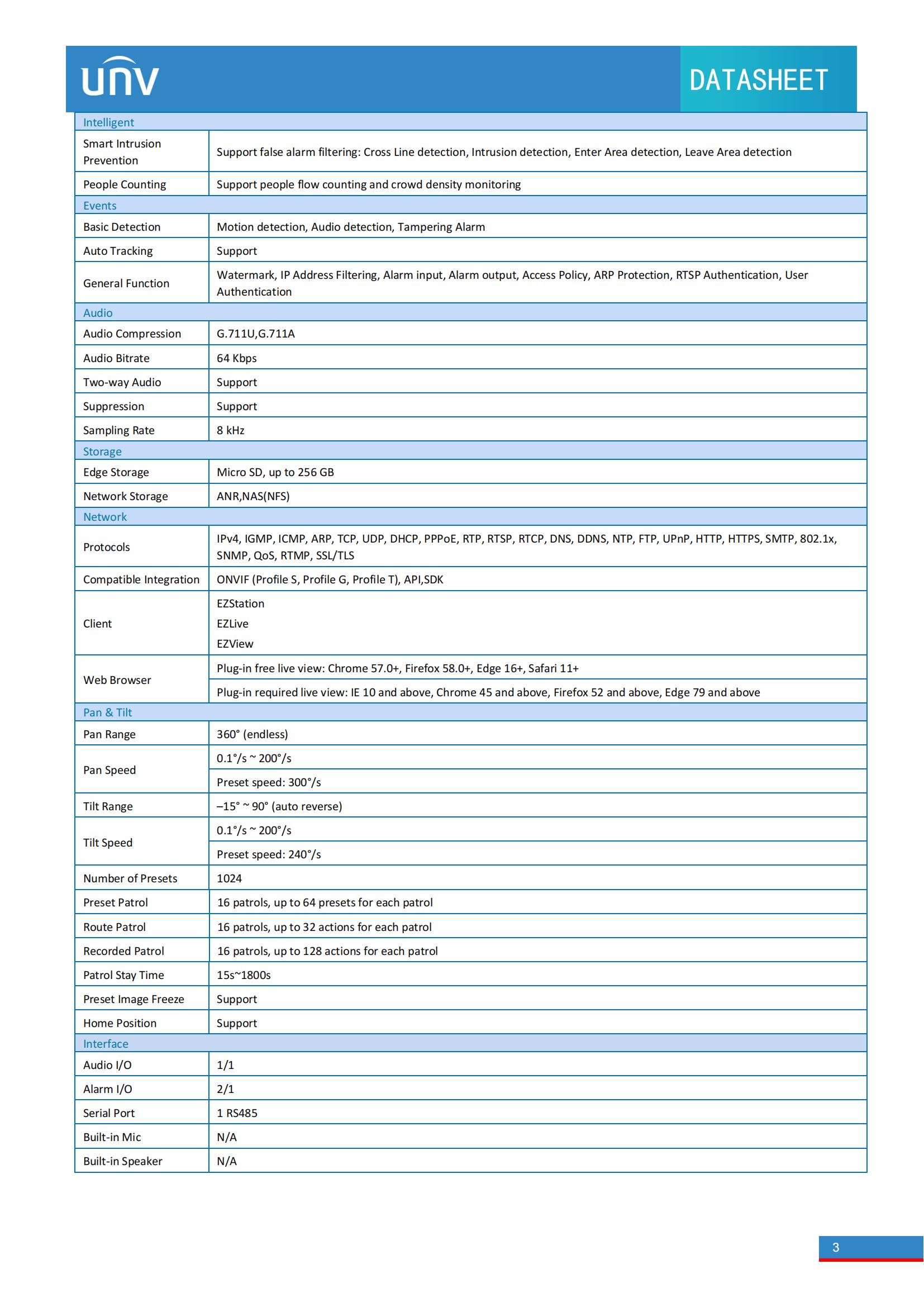• Smart intrusion prevention, support false alarm filtering, include Cross Line, Intrusion, Enter Area, Leave Area detection