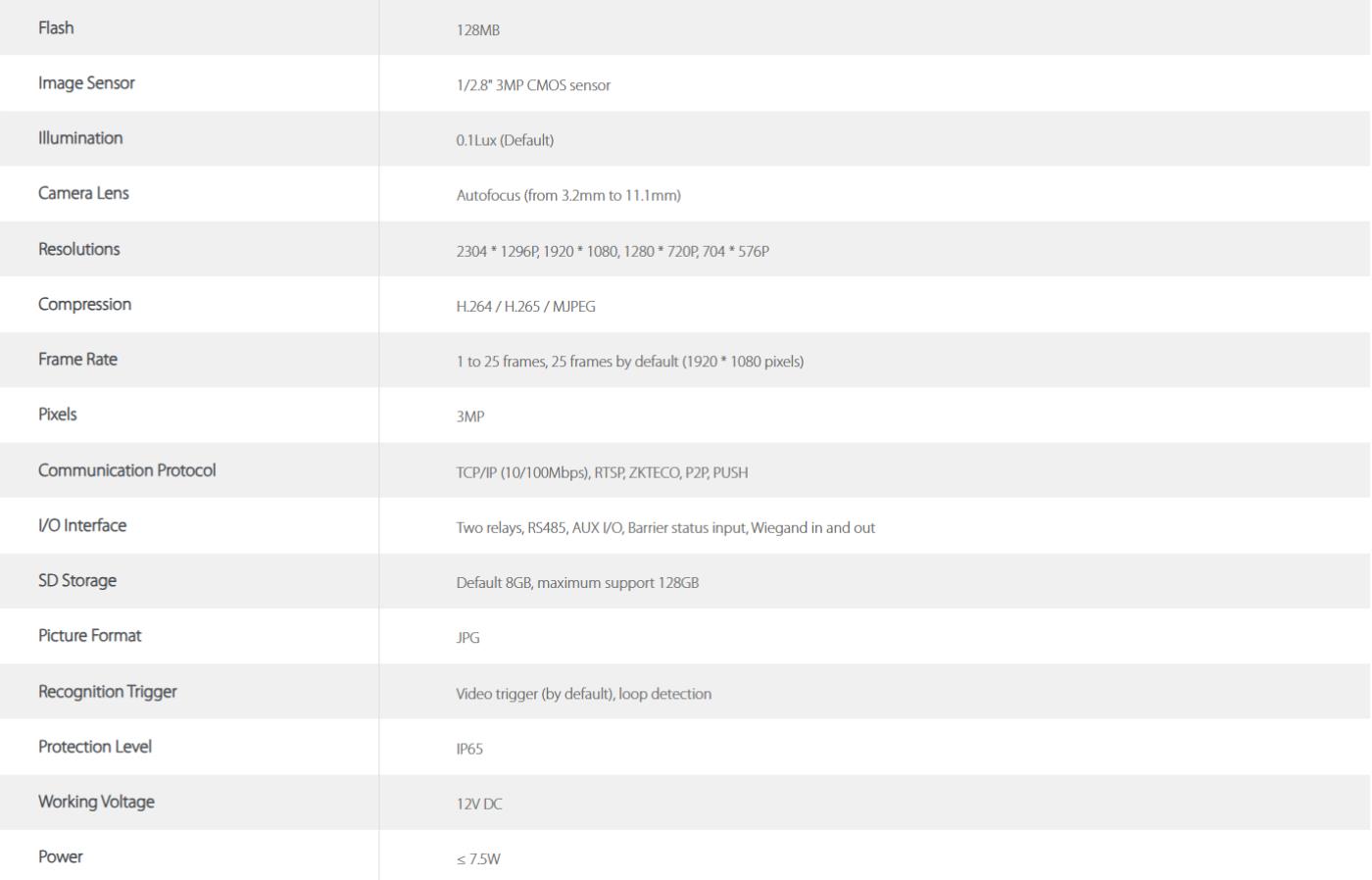 LPRC300 is ZKTeco’s new generation of license plate recognition cameras adopting a 0.5 TOPS chip and an embedded deep learning a algorithm.