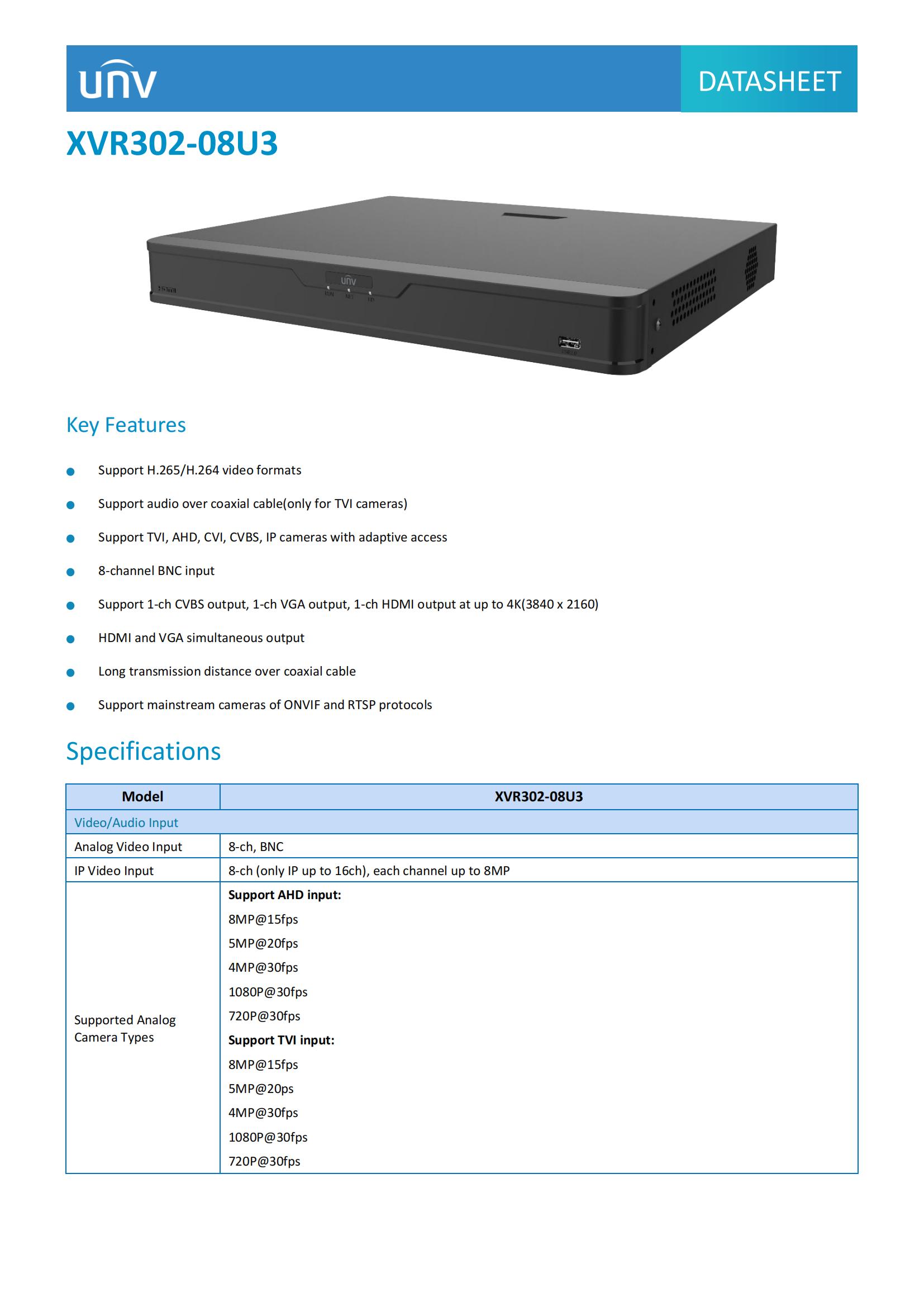 Support TVI, AHD, CVI, CVBS, IP cameras with adaptive access